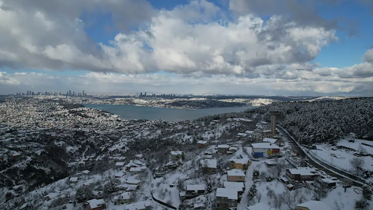 Ali AKSOYER / İSTANBUL, (DHA)- İSTANBUL'da aralıklarla devam eden kar yağışı kent üzerinde beyaz örtü oluşturdu. Gece boyunca etkili olan kar yağışından Beykoz Kavacık'ta etkilendi. Kar yağışı sonrası Kavacık ve çevresi havadan böyle görüntülendi. (DHA)
