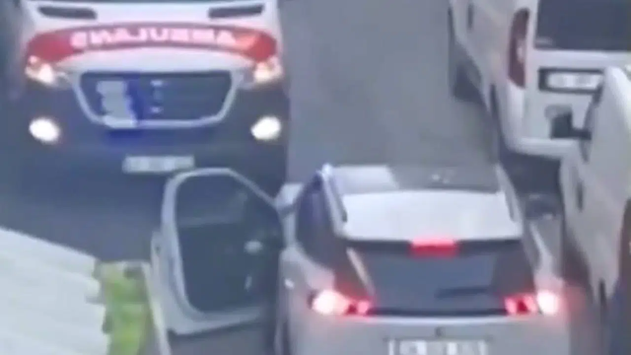 İstanbul-Küçükçekmece’de otomobil sürücüsünün ambulansa yol vermediği anlar kamerada