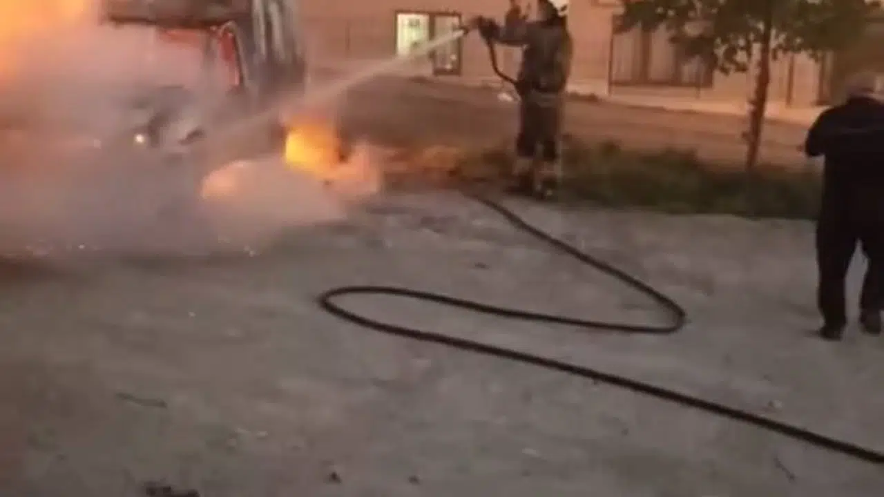Yangın saat 20.00 sıralarında Kanarya Mahallesi Huzur Caddesi'ndeki bulunan boş arazide meydana geldi. Park halindeki 34 NDB 86 plakalı hafif ticari araçta, henüz bilinmeyen bir sebeple yangın başladı. Kısa sürede büyüyen yangın, aracın tamamına yayıldı. Çevredekilerin ihbarı üzerine bölgeye polis ve itfaiye ekipleri geldi. Yangın, itfaiye ekiplerinin müdahalesi ile söndürüldü. Yangında hafif ticari aracın yanında park halinde olan 34 YNA 41 plakalı TIR’ın da hasar gördüğü tespit edildi. (DHA)