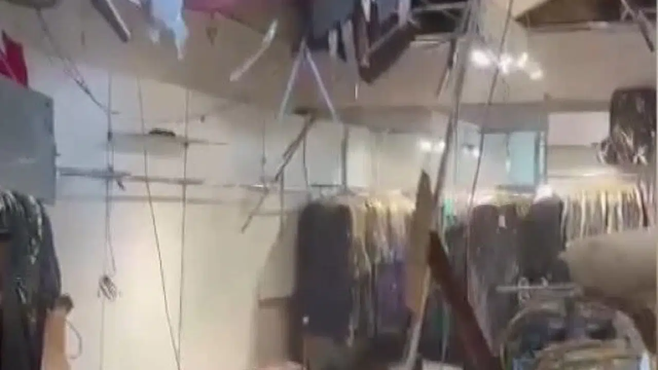 İstanbul- Küçükçekmece'de yıkımı yapılan binadan kopan parçalar yanındaki mağazanın tavanını delerek içeri düştü