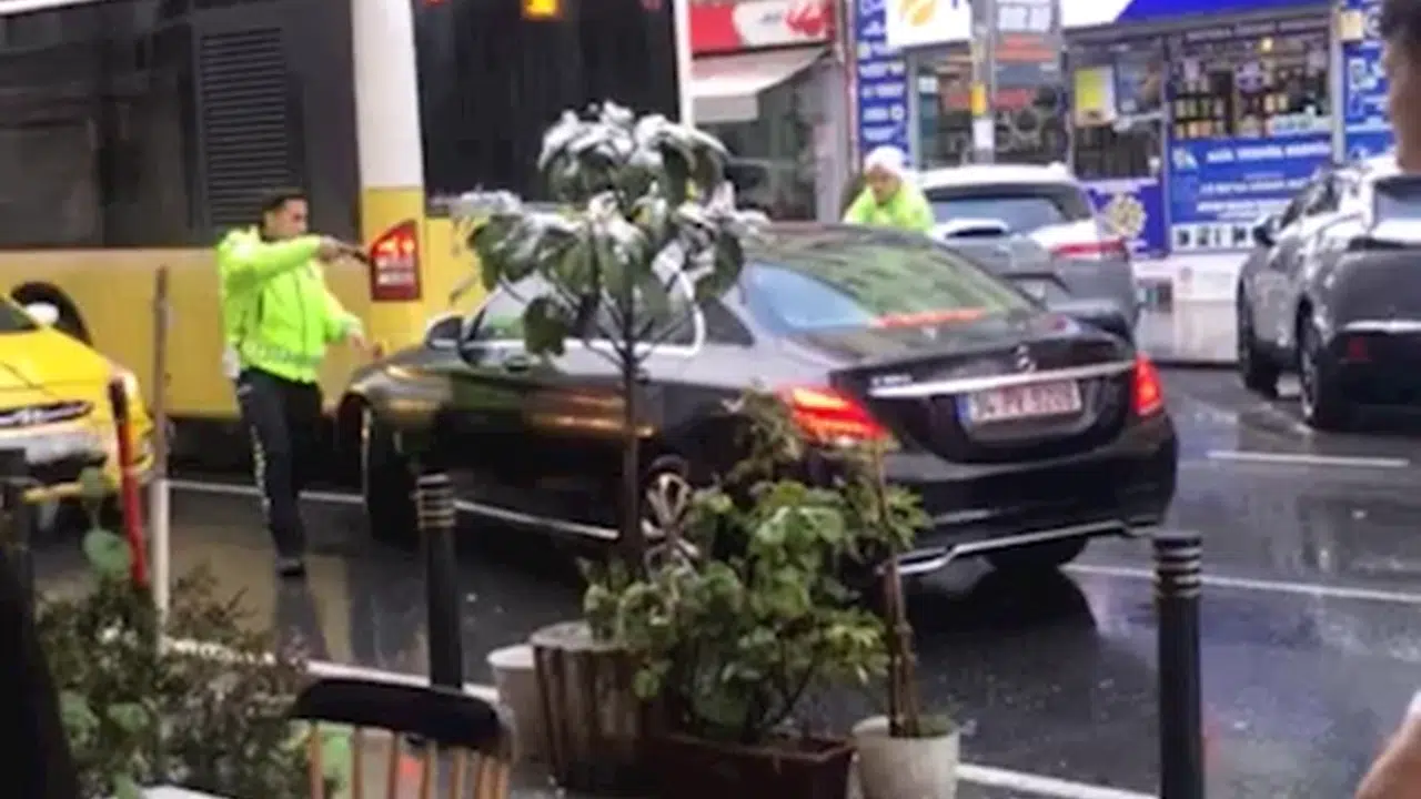 Öte yandan polisin şüpheliyi durdurmak için silah çektiği ve otomobilin önüne geçtiği anlar cep telefonu kamerasına yansıdı.