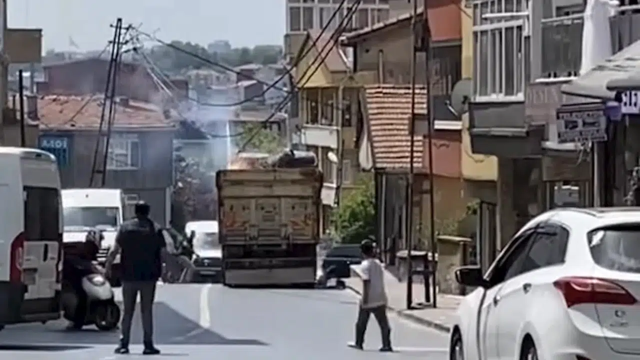 Olayı anlatan esnaf Çekin Koçak, "Kamyonun üstünde demir bir boru vardı. Yoldan geçerken demir boru elektrik kablolarına takıldı ve kabloları kopardı. Kopan kablodan alevler çıktı sonrasında kamyonun üstünde yangın çıktı. Su dökülerek kamyondaki yangın söndürüldü. Olay sonrası kamyoncu çekip gitti. Elektrikler kesik dolapta bozulacak ürünlerimiz var. Mağdur olduk kabloların bir an önce yapılmasını istiyoruz" diye konuştu.