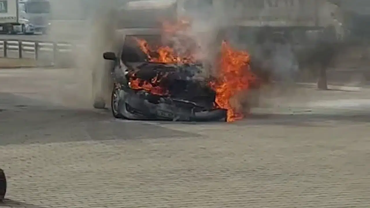 Otomobil sürücüsü M.Ç., "Yoldayken alev aldı. Direk kenara çektim. Araçtan rahat çıktım, yeni başlamıştı yangın. Herhangi bir sıkıntımız yok. Arkadaşlar sağ olsunlar geldiler söndürdüler. Yangın, aracın sol tarafı, akü tarafından çıktı diyebilirim. Elektrik tesisatından belki olabilir" dedi.