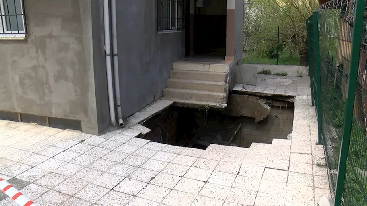 İstanbul - Pendik’te 4 katlı binanın bahçe zemininde çökme