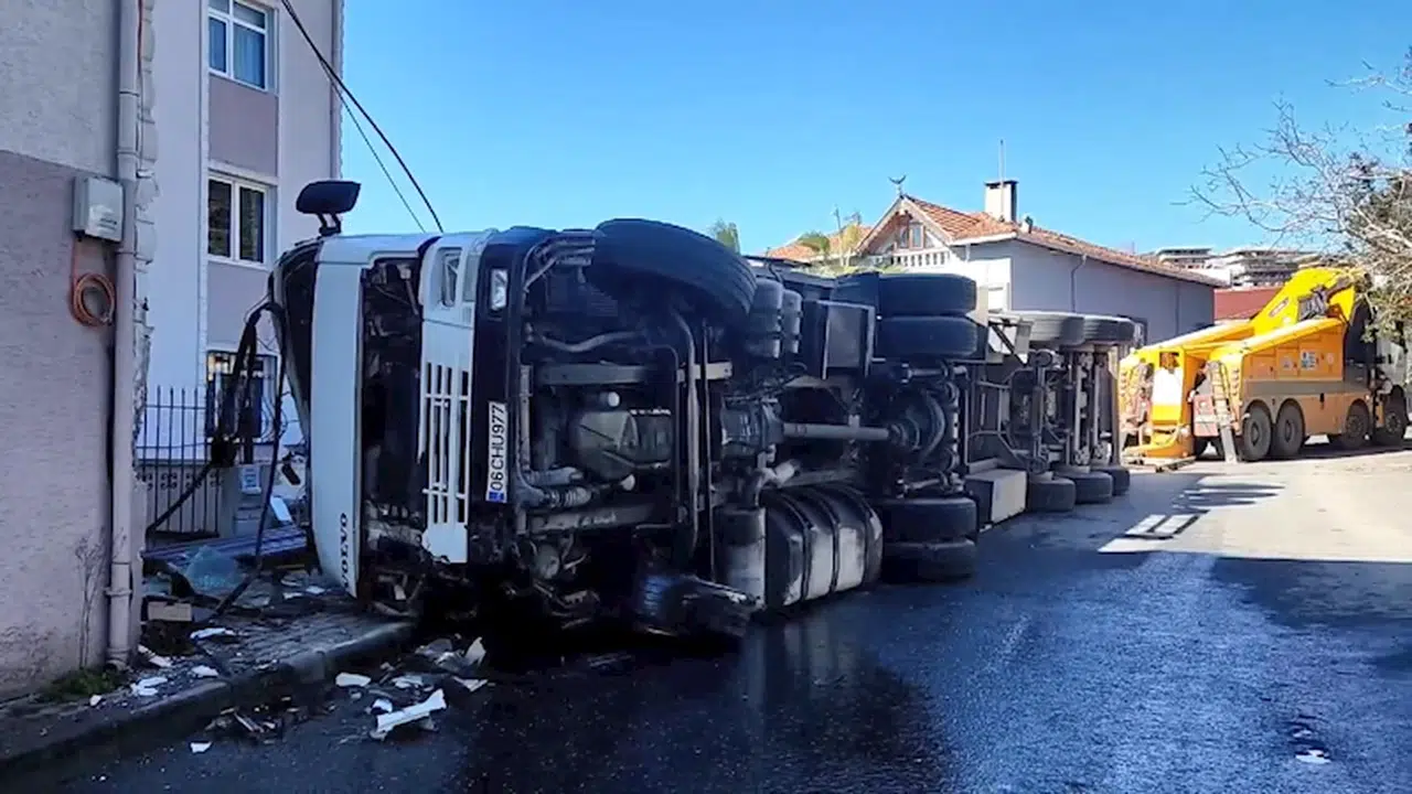 İstanbul - Sarıyer'de freni arızalanan TIR yan yattı; şoför yaralandı