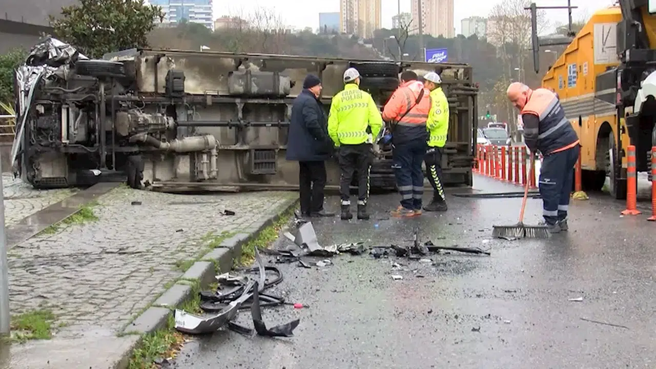 Kaza, Maslak Ayazağa Caddesi'nde saat 11.00 sıralarında meydana geldi. Edinilen bilgiye göre, 34 GFE 219 plakalı kamyon şoförü D.G. yokuş aşağıya indiği sırada aracının direksiyon hakimiyetini kaybederek karşı şeritten gelen otomobile çarptı. Kazada kamyon yan yatarken şoför araç içerisinde sıkıştı. Yaralı şoför, kamyondan çıkarılarak hastaneye kaldırıldı. Otomobilde bulunan 2 kişi de tedbir amaçlı hastaneye kaldırıldı.