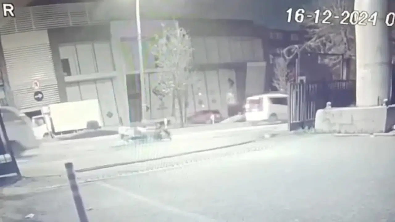 Güvenlik kamerasına yansıyan görüntülerde İmam Abdülkerim Kaba'nın kazılan çukura takılarak motosikletinden düştüğü ve arkasından gelen aracın altında kaldığı görülüyor. (DHA)