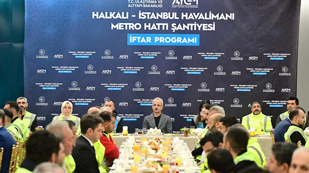 Ulaştırma ve Altyapı Bakanı Abdulkadir Uraloğlu, Halkalı-İstanbul Havalimanı Metro Hattı Şantiyesi’nde çalışan işçiler ile iftar programında bir araya geldi. Burada konuşan Uraloğlu, “Sizlerin alın teri, fedakarlığı ve azmiyle ilerleyen Halkalı- İstanbul Havalimanı Metro Hattımızın Halkalı Stadyum İstasyonu şantiyesinde sizlerle yan yana iftar açmak benim için gerçekten çok kıymetli. Mübarek ramazan ayının bu bereketli sofrasında, sizlerle bir araya gelmekten büyük memnuniyet duyuyorum. Biliyorsunuz ramazan, sadece aç ve susuz kalmak değil, aynı zamanda gönüllerimizi de arındırmak, birlik ve beraberliğimizi pekiştirmek demektir" ifadelerini kullandı.