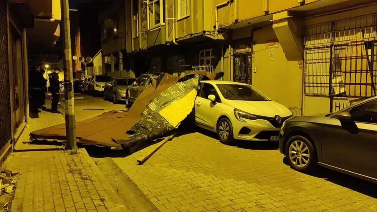İstanbul'da fırtına: Binanın çatısı uçtu