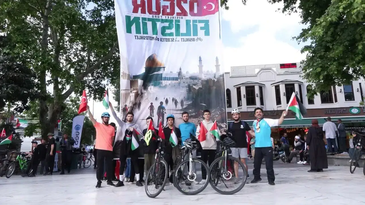Anadolu Gençlik Derneği İstanbul Şubesi "Nehirden Denize Özgür Filistin Bisiklet Turu" düzenledi. Etkinliğe katılmak için çok sayıda bisiklet, scooter ve motosiklet sürücüsü Eyüp Sultan Camii önünde toplandı. Ellerinde Filistin ve Türk bayrakları taşıyan grup Eminönü Yeni Camii'ye kadar 6 kilometre boyunca pedal çevirdi.