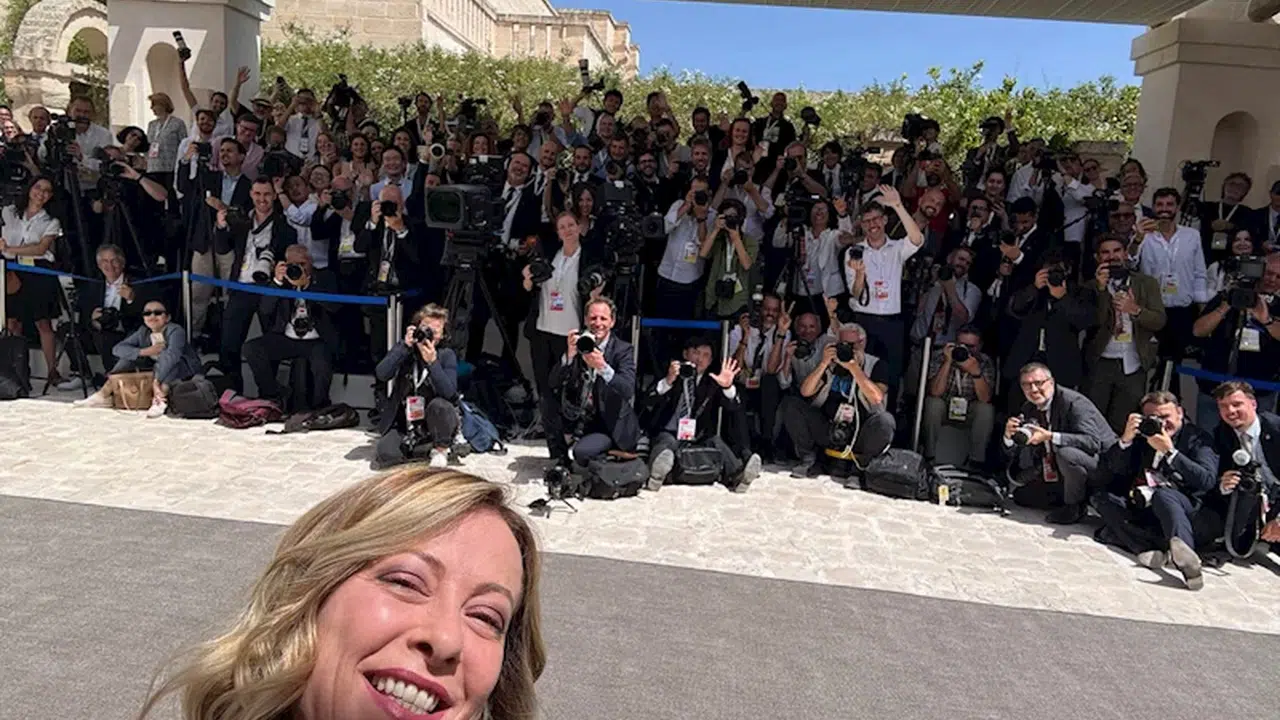- Meloni’nin gazetecilerle selfie çektirdiği anlar