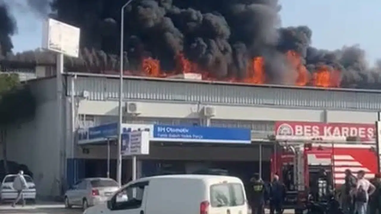Evka-3 Mahallesi'nde 4. Sanayi Sitesi'nde bulunan 129/9 Sokak'taki bir iş yerinde, saat 10.30 sıralarında yangın çıktı. Alevleri fark edenler, durumu itfaiye ekiplerine bildirdi. Büyüyen alevler, yakındaki başka işyerlerine de sıçradı. Olay yerine çok sayıda itfaiye ekibi sevk edildi. Gökyüzüne yükselen simsiyah duman ilçenin pek çok noktasından görülürken, polis ekipleri çevre güvenliğini sağlamak için önlem aldı. İtfaiye ekiplerinin alevlere müdahalesi sürüyor.(DHA)