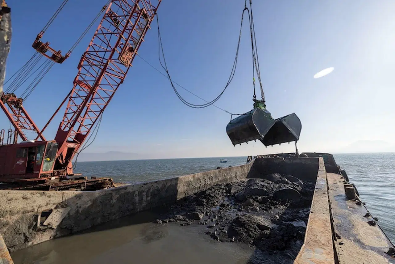 İZMİR, (DHA)-İZMİR Büyükşehir Belediyesi, Körfez dip tarama çalışmalarında, bir ayda 60 bin ton çamur çıkarıldı.