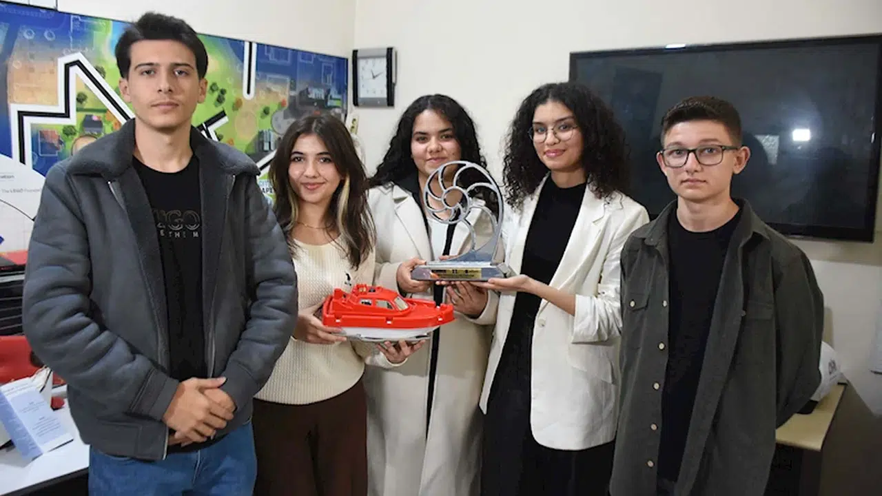 Dünya 2’nciliği getiren Batmayan Gemi projelerini anlatan İTO Vakfı Süleyman Taştekin MTAL öğrencisi Naz Duymaç ise "Projemiz can ve mal kaybını en aza indirerek tahliye süresini uzatmak üzere gemiler için yapılmış bir sistem. Bu sistemde kauçuk hava yastıkları var. Su seviye sensörleri suyun seviyesini ölçüyor, suyun seviyesine göre ledleri yakıyor. Kaptan tehlikeli bir durum olduğuna karar verirse sistemi çalıştırıyor. Alttan şişen hava yastıkları gemiyi suyun üzerine çıkarıyor. Yanlarda bulunan hava yastıkları da geminin dengede durmasını sağlıyor. Gemi su üzerinde dengede dururken tahliye süresi uzuyor" dedi. Çevreye ve insanlara yararlı bir proje yapmayı hedeflediklerini belirten Hiranur Kesik ise projeyi geliştirmek istediklerini dile getirdi.
