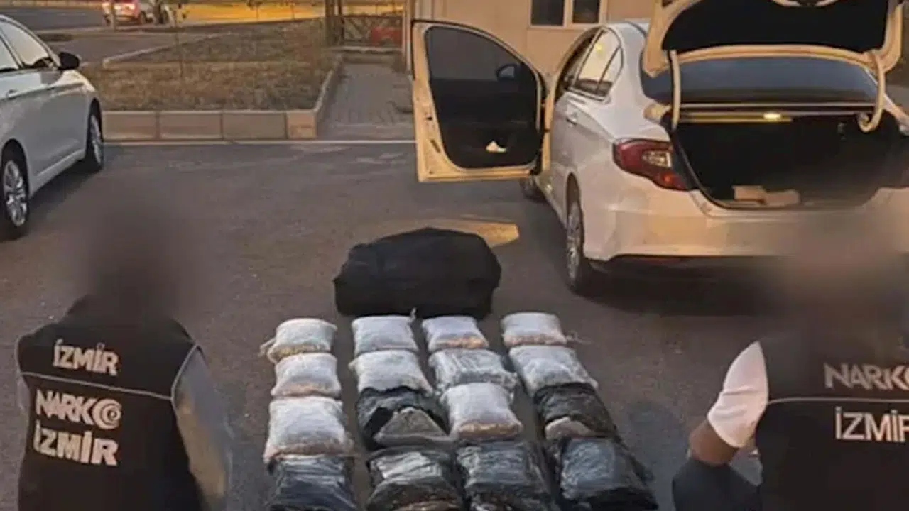 Narkotik Suçlarla Mücadele Şube Müdürlüğü ekipleri yaptıkları çalışmalar neticesinde diğer illerden yüklü miktarda uyuşturucu madde getirileceği bilgisine ulaştı. Harekete geçen ekipler takibe aldıkları otomobili Kemalpaşa ilçesinde durdurdu. Araçta narkotik köpeği 'Rex' ile yapılan aramada 26 kilo 550 gram esrar ele geçirildi. Otomobili kullanan Ç.İ., gözaltına alındı. Ç.İ., emniyetteki işlemlerinin ardından sevk edildiği adliyede çıkarıldığı mahkemede tutuklandı. (DHA)