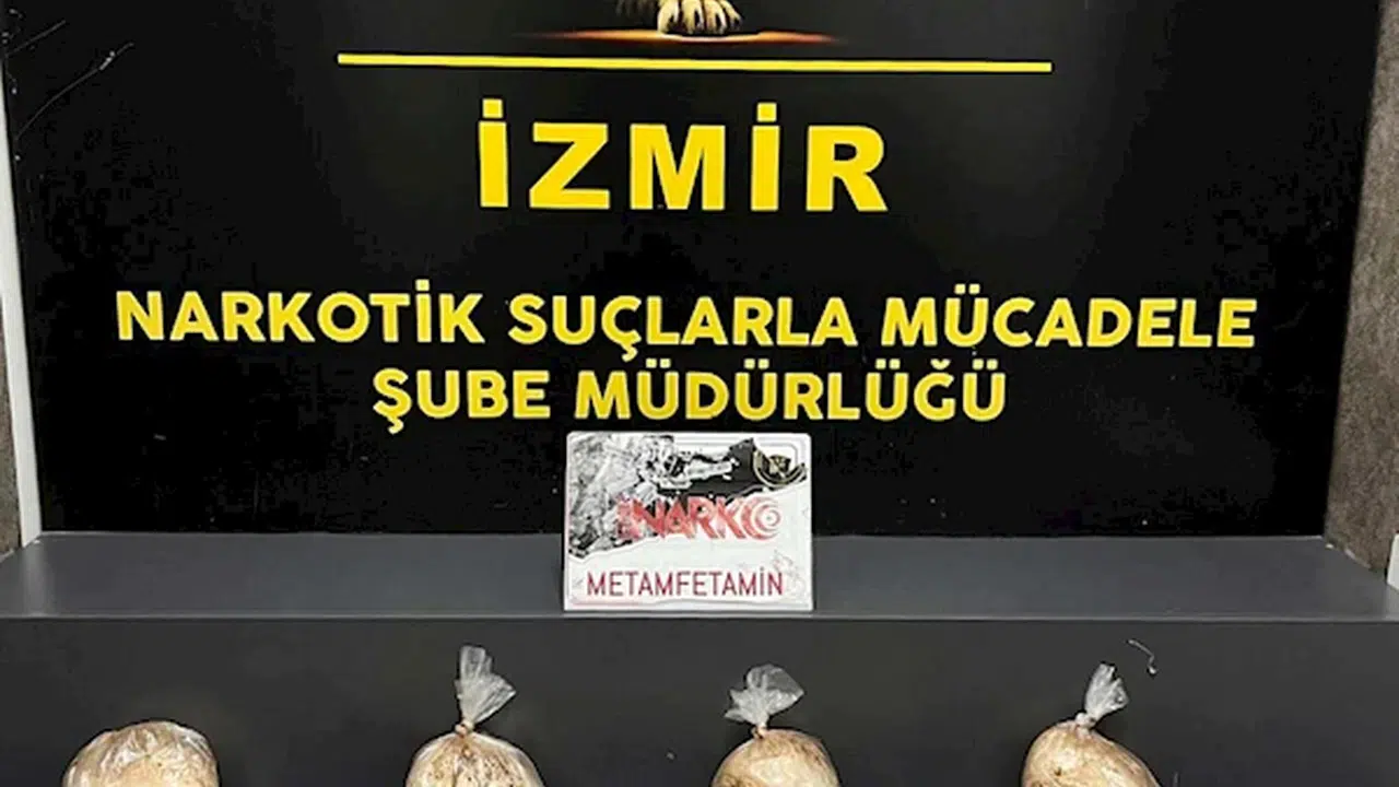 Tekin GÜRBULAK/ İZMİR, (DHA)- İZMİR’de polisin durdurduğu otomobilde 8 kilogram metamfetamin ele geçirildi, 1 şüpheli tutuklandı.