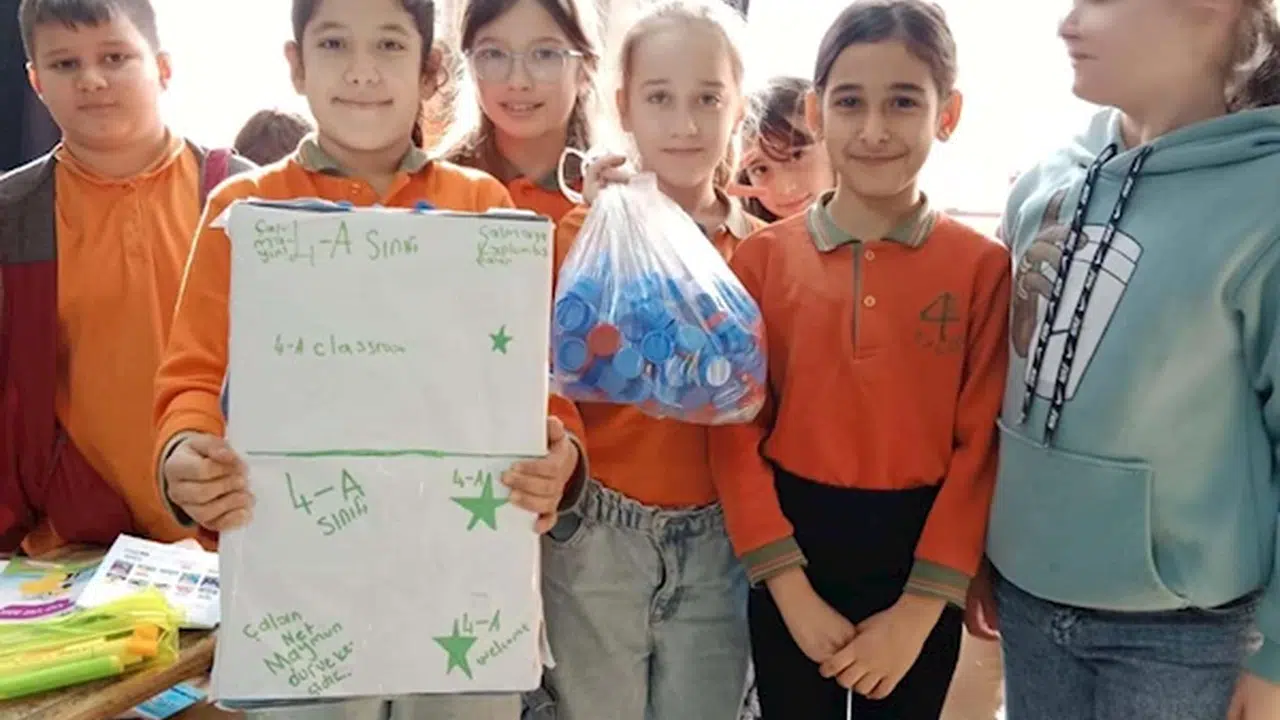 İzmir'de ilkokul öğrencilerinin topladığı mavi kapaklar, umuda dönüşüyor