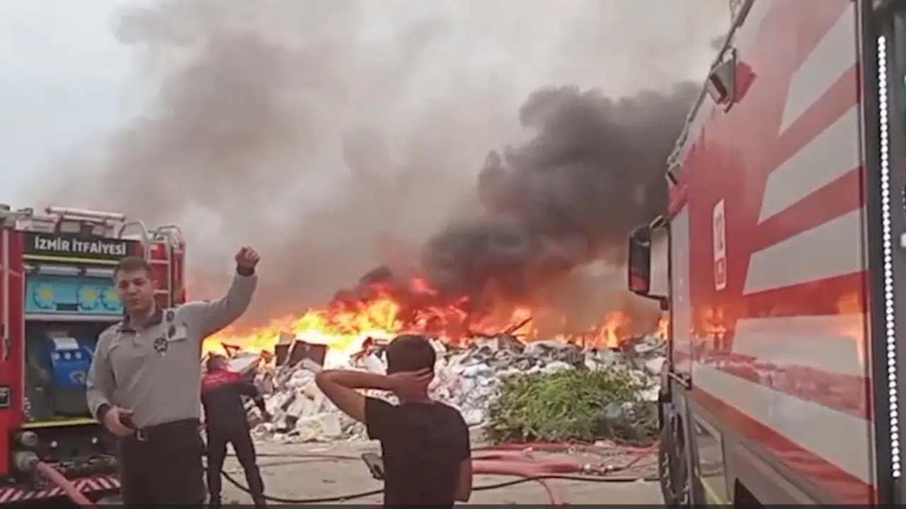 Dinçer Can SONER/ İZMİR, (DHA)- İZMİR’in Karabağlar ilçesinde kaçak olarak dökülen moloz, hafriyat ve evsel atıkların bulunduğu alanda yangın çıktı. İtfaiye ekipleri yangını söndürmek için çalışma başlattı.