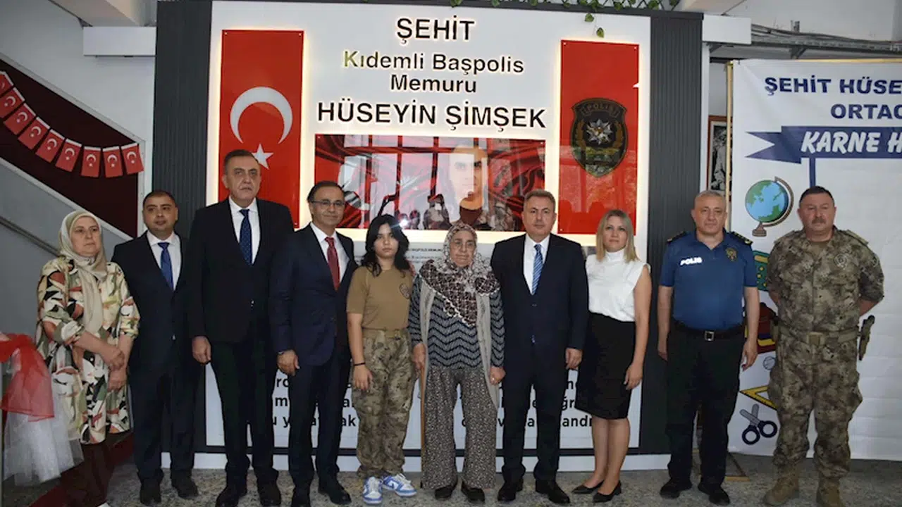Fırat Kalkanı Harekatı kapsamında Suriye Dabık Üs Bölgesi'ne bölücü terör örgütü mensuplarının gerçekleştirdiği roketli saldırıda yaralanan özel harekat polisi Kıdemli Başpolis Hüseyin Şimşek, 6 Ekim 2023'te tedavi gördüğü hastanede hayatını kaybetti. Şehit Şimşek'in adı Buca Ortaokulu'na verildi. Milli Eğitim Bakanlığı'na (MEB) bağlı ilk ve ortaöğretim okullarındaki 20 milyonu aşkın öğrenci, bugün karne alarak yaz tatiline girerken, İzmir Şehit Hüseyin Şimşek Ortaokulu'nda da karne töreni düzenlendi. Kentte, 243 bin 205 ilkokul öğrencisi, 225 bin 635 ortaokul öğrencisi, 228 bin 581 lise öğrencisi, geri kalanı ise açık öğretim olmak üzere toplam 765 bin 404 öğrencinin karne aldı. Törene İzmir Valisi Süleyman Elban, İzmir İl Milli Eğitim Müdürü Ömer Yahşi'nin de aralarında bulunduğu protokol üyeleri ile Şimşek'in ailesi ve silah arkadaşları da katıldı. Tören, saygı duruşu ve İstiklal Marşı ile başladı ardından şehitler için dua edildi. Törende, Şimşek'in öz geçmişi okundu. Şimşek'in kızı Öykü Gökçen Şimşek (16), babasıyla ilgili duygularını paylaştı.