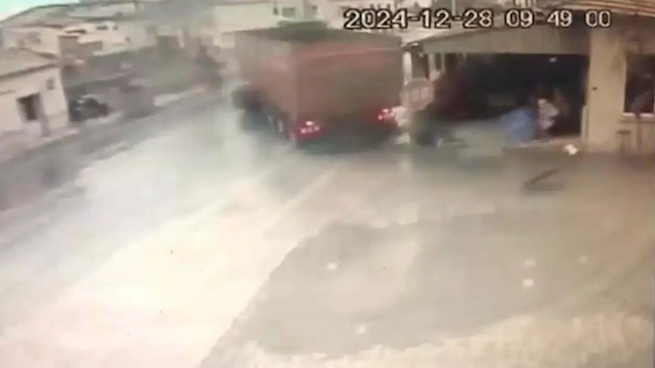 İzmir'de kayan TIR, kahvehaneyi teğet geçti; o anlar kamerada