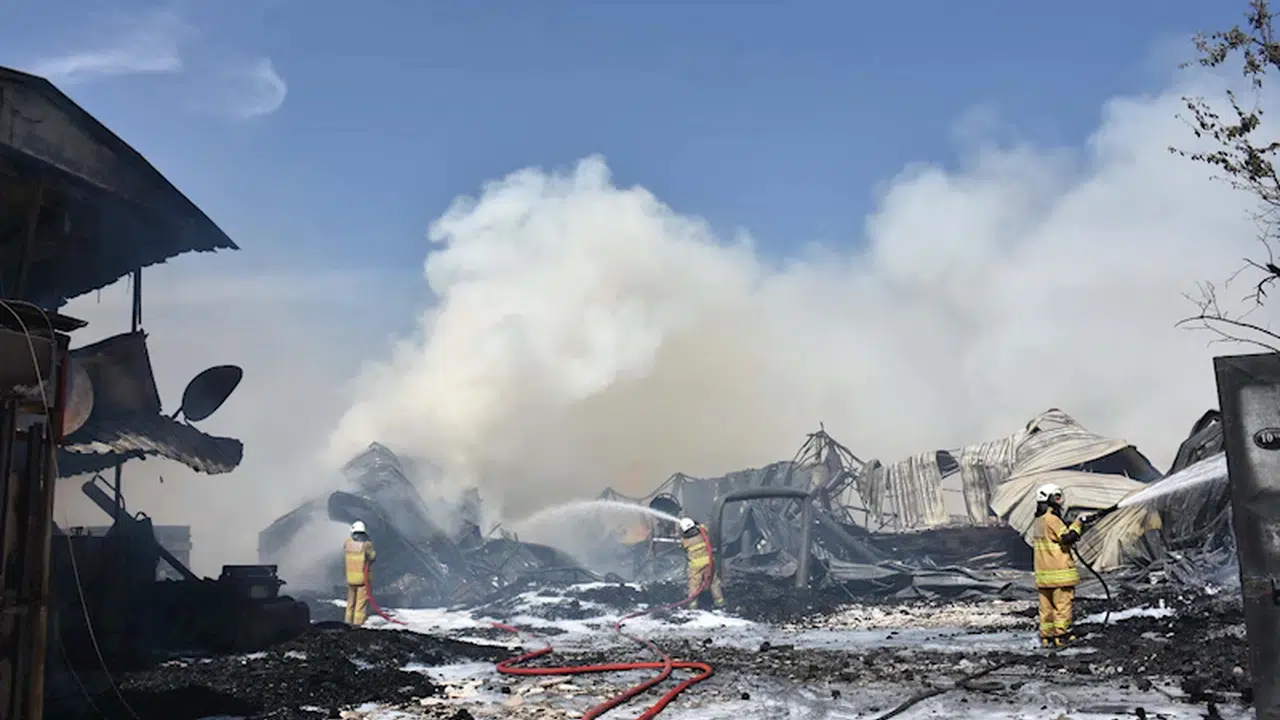 İzmir'in Bornova ilçesinde yol kenarlarındaki otlarda başlayan ve palet fabrikasına da sıçrayan yangında, gökyüzünü yoğun duman kapladı. Fabrikanın bahçesindeki paletlerin bir bölümü, alevler ulaşmadan başka alana taşınarak uzaklaştırıldı. Söndürme çalışmalarına çevre işletmelerde çalışan işçiler de destek verdi. Fabrikadaki iki otomobil de çevredeki vatandaşların yardımıyla dışarı çıkarılarak, yanmaktan kurtarıldı. Alevler, itfaiye ekiplerinin çabası sonucu 1 saatte kontrol altına alındı. Fabrikada büyük oranda hasar meydana gelirken, soğutma çalışmaları sürüyor. (DHA)