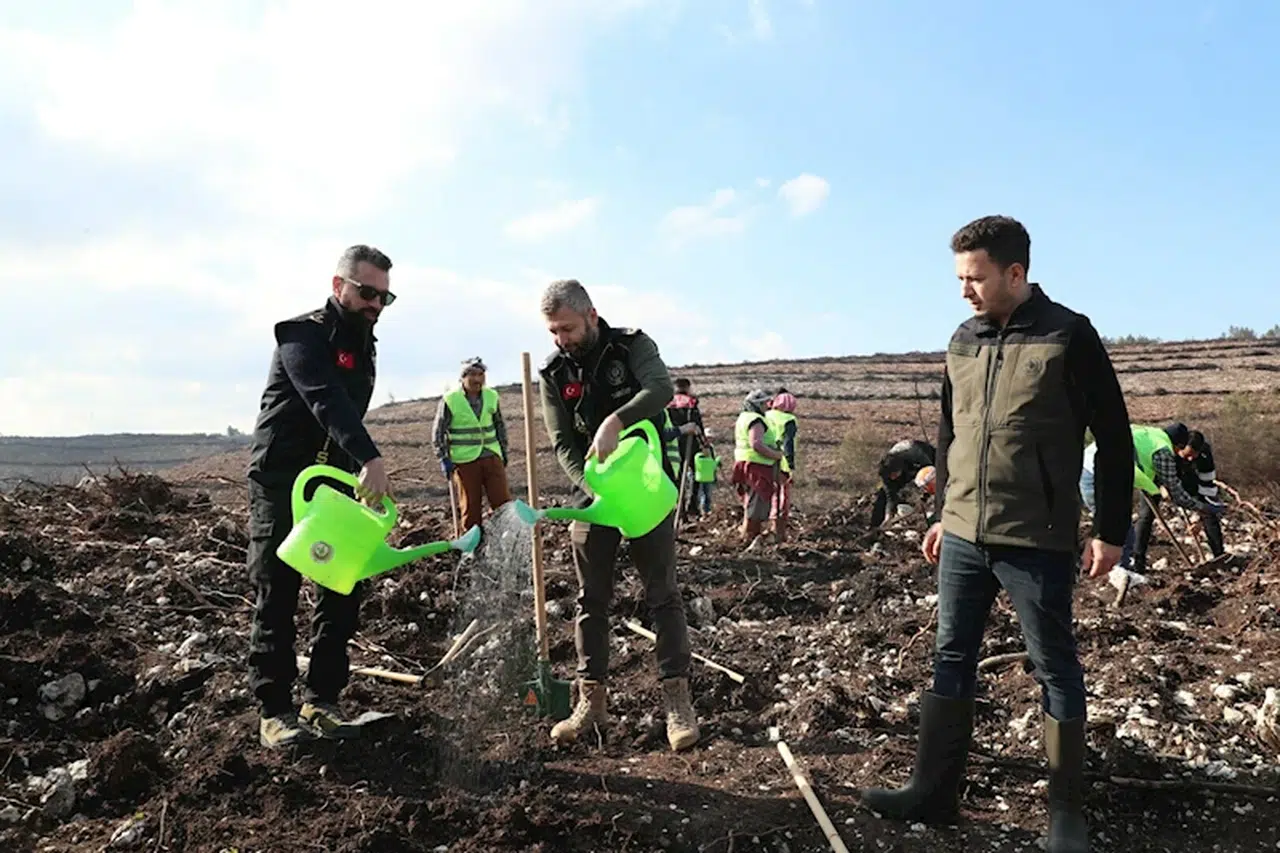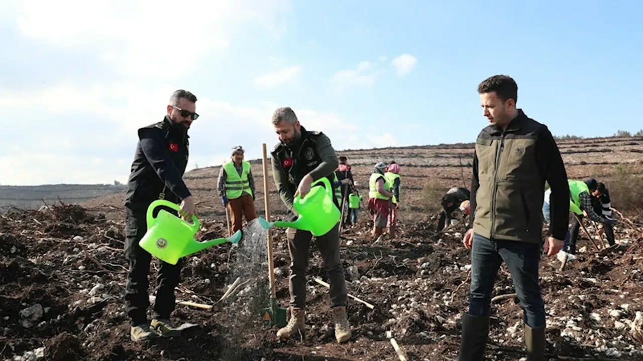 Buca'nın Mustafa Kemal Mahallesi'ndeki ormanlık alanda, geçen yıl temmuz ayında yangın çıktı. İzmir Orman Bölge Müdürlüğü'ne ait çok sayıda uçak, helikopter, arazöz ve su ikmal aracı ile yangına müdahale edildi. Uzun süren çalışma sonucu kontrol altına alınan yangında, onlarca hektar alan zarar gördü. İzmir İl Emniyet Müdürlüğü'ne bağlı birimler, yanan alanların yeniden yeşillendirilmesi için 'Geleceğe nefes olduk' sloganıyla çalışma başlattı. Çeşitli birimlerden 300 personel, yanan alanlara toplam 5 bin çam, kara ve mavi servi ve akasya fidanı dikti. Ardından fidanlara, can suyu verildi. Fidan dikim çalışmalarına orman ekipleri de destek verdi.