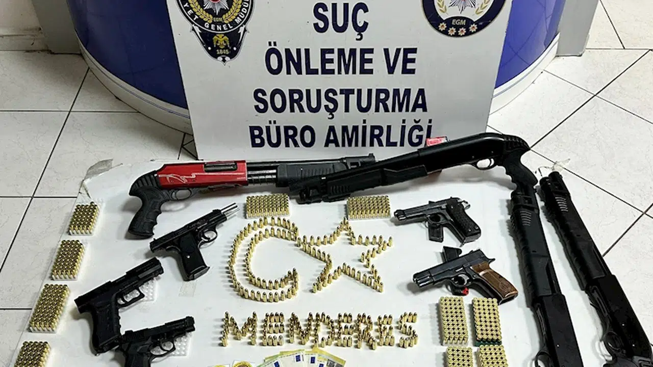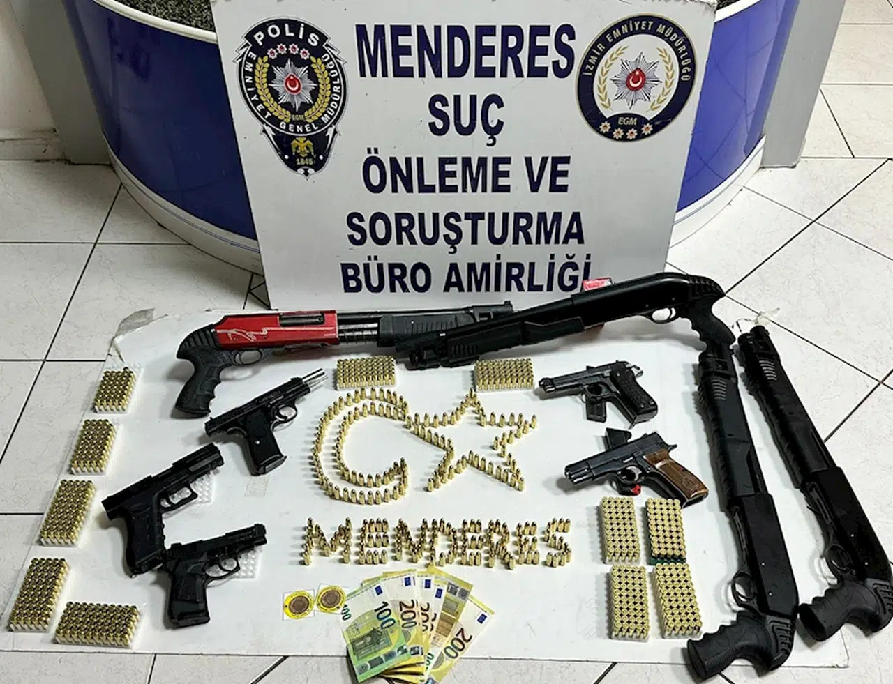 Menderes Suç Önleme ve Soruşturma Büro Amirliği ekipleri, ilçede bir kişinin silah kaçakçılığı yaptığı bilgisini aldı. Bunun üzerine teknik ve fiziki takip başlatan polis, E.Ş.'nin Ordu'dan silah getirdiğini ve sattığını tespit etti. Savcılığın talimatı ile operasyon düzenleyen polis, E.Ş.’yi gözaltına aldı. E.Ş.’nin adresinde yapılan aramada, 3 ruhsatsız tabanca, 2 kurusıkı tabanca, 4 pompalı av tüfeği, 752 tabanca mermisi, 26 tüfek fişeği, 14 kurusıkı tabanca mermisi ve silah ticaretinden elde edildiği değerlendirilen bin 500 avro ile 2 Cumhuriyet altını ele geçirildi. Gözaltına alınan E.Ş. ise Menderes İlçe Emniyet Müdürlüğü'ne götürüldü. E.Ş.'nin işlemleri tamamlandıktan sonra adliyeye sevk edileceği bildirildi. (DHA)