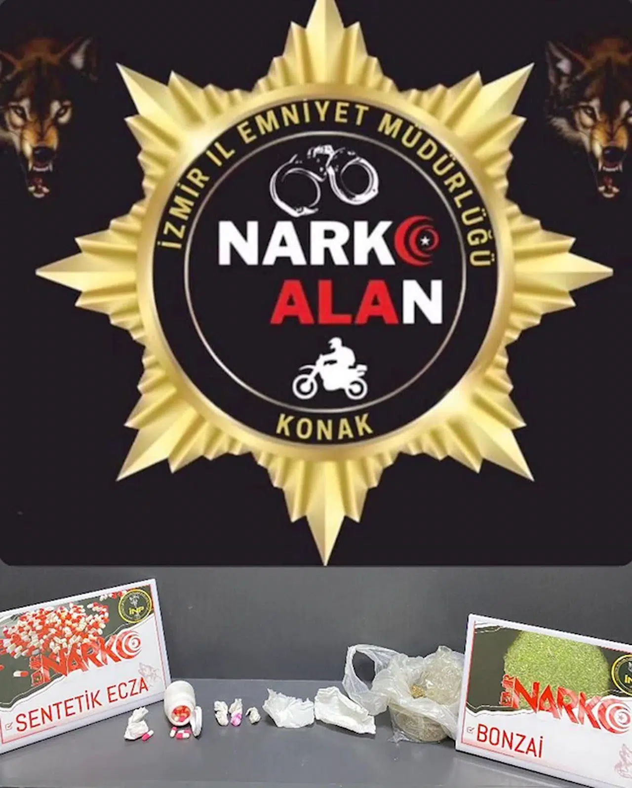 Konak İlçe Emniyet Müdürlüğü ile Narkotik Suçlarla Mücadele Şube Müdürlüğü'ne bağlı Narkoalan ekipleri, 01-04 Mayıs tarihleri arasında ilçede önceden belirlenen 7 ayrı adrese eş zamanlı operasyon düzenlendi. Söz konusu adreslerdeki aramalarda 4.125 gram bonzai, 6.18 gram kokain, 10.95 gram metamfetamin, 38 adet ecstasy uyuşturucu hap, 83 adet sentetik ecza hap, 2 hassas terazi ve 232 bin 280 TL ele geçirildi.