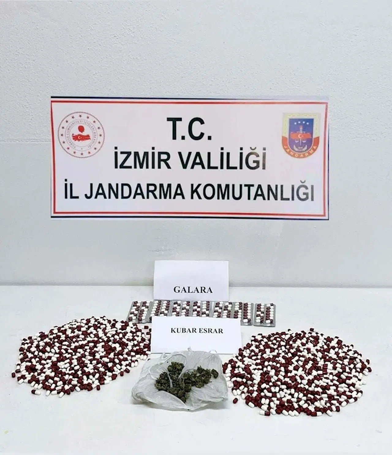 Kadir ÖZEN / İZMİR, (DHA)-İZMİR'in Güzelbahçe ve Aliağa ilçelerinde uyuşturucu satıcılarına yönelik jandarma tarafından yapılan operasyonda, 7 kilo 236 gram skunk, 2 bin 50 adet sentetik hap ve 20 gram kubar esrar ele geçirildi.