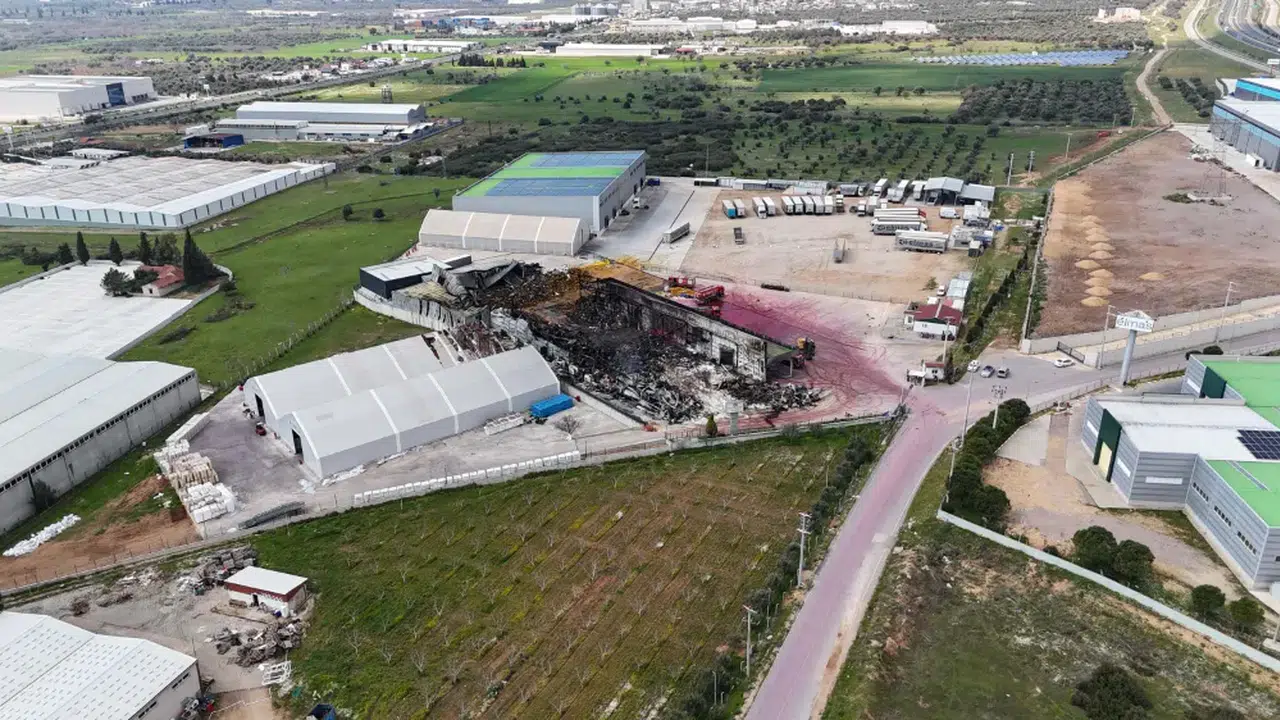 İzmir'de soğuk hava deposundaki yangının hasarı havadan görüntülendi