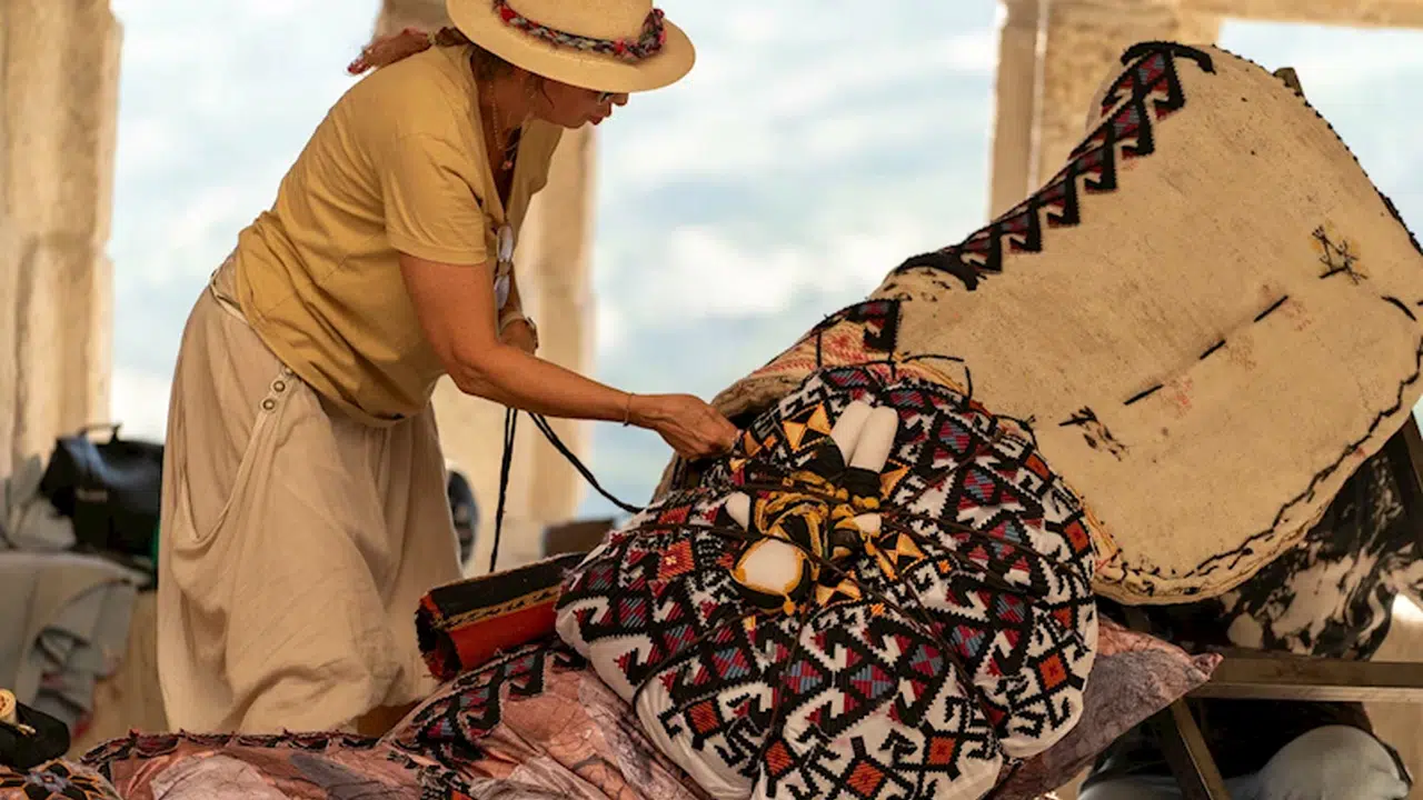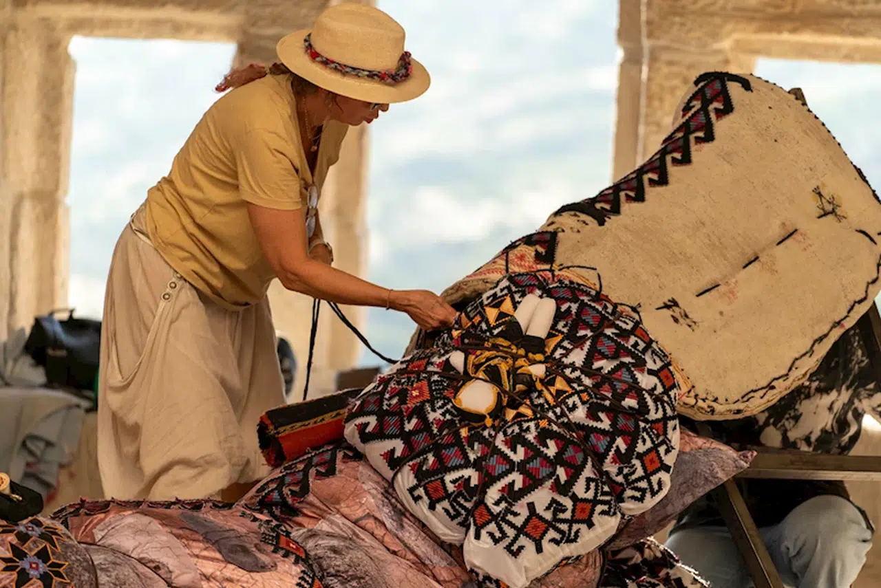 İZMİR, (DHA)-TÜRKİYE'nin en büyük çağdaş sanat etkinliklerinden biri olarak gösterilen ve 'iyileşmek' temasıyla Adıyaman'ın ev sahipliğinde düzenlenen Kommagene Bienali, ikinci kez sanatseverlerle buluştu. İzmir Ekonomi Üniversitesi (İEÜ) Tekstil ve Moda Tasarımı Bölümü'nden Doç. Dr. Şölen Kipöz, moda tasarımcısı Hatice Gökçe ile birlikte hazırladığı 'Yükü Omuzlamak' adlı tekstil yerleştirmesiyle bianelde yer aldı. Bölgeye özgü motifleri işleyerek hazırladıkları eserde, atık kumaşlardan geri dönüştürülmüş elyafları kullandıklarını söyleyen Kipöz, "Bölgede, tarih boyunca kadının inşa edici, şifa verici ve hayatı devam ettirici bir rolü olduğu biliniyor. Biz de çalışmamızda bunu yansıtmak istedik" dedi.