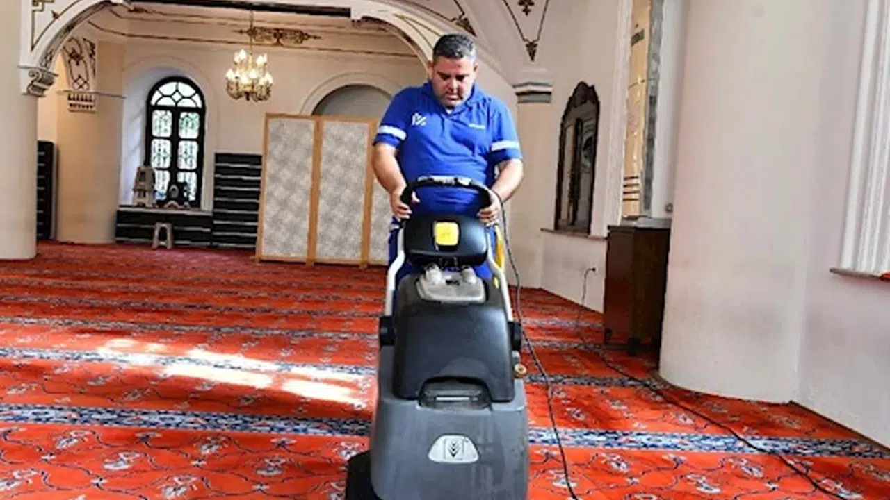 İZMİR, (DHA) - İZMİR Büyükşehir Belediyesi, yaklaşan Kurban Bayramı öncesi ibadethanelerdeki temizlik çalışmalarına hız verdi. İZBETON bünyesindeki ekipler, camileri minberinden avizesine kadar baştan sona temizliyor.