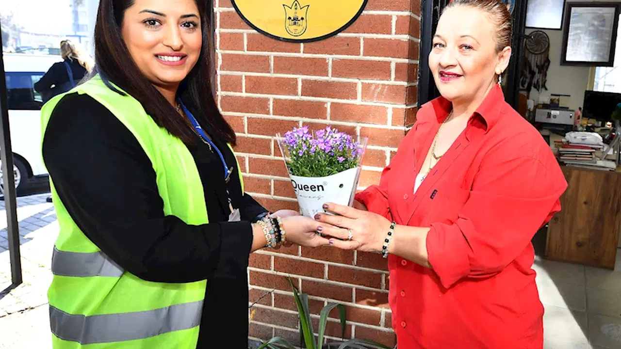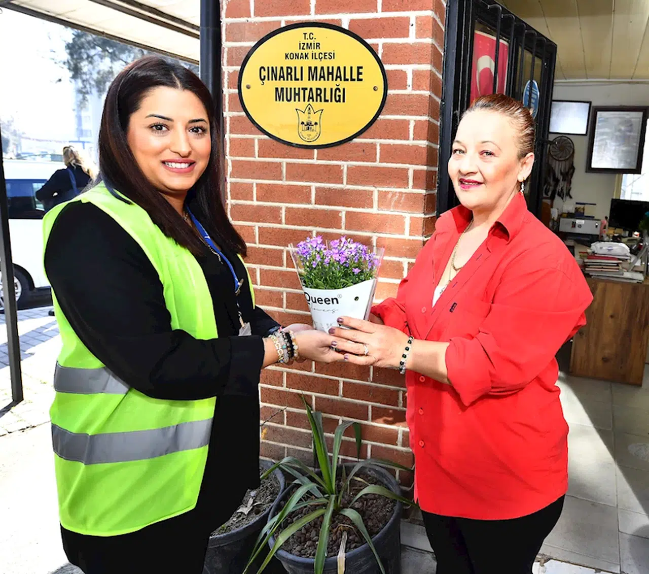 İzmir'in kadın muhtarlarına mor çiçekli sürpriz