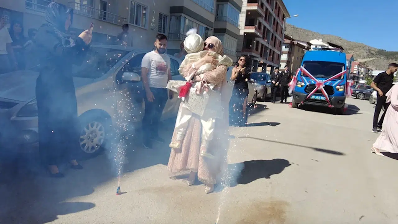 Şerife Serap KARA/ AMASYA, (DHA)- AMASYA'da jandarma aracı, 2018 yılında şehit olan Jandarma Uzman Çavuş Kadir Çakı’nın (26) oğlu Alp Aslan Çakı (7) için sünnet arabası oldu.