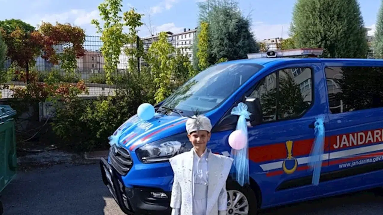Ali SAYLAM/SEYDİŞEHİR,(Konya)(DHA)- KONYA'nın Seydişehir ilçesinde jandarma aracı, görev başında kalp krizi geçirerek şehit olan Piyade Uzman Çavuş Osman Koyuncu’nun oğlu Kaan Koyuncu'nun (9) sünnet arabası oldu.
