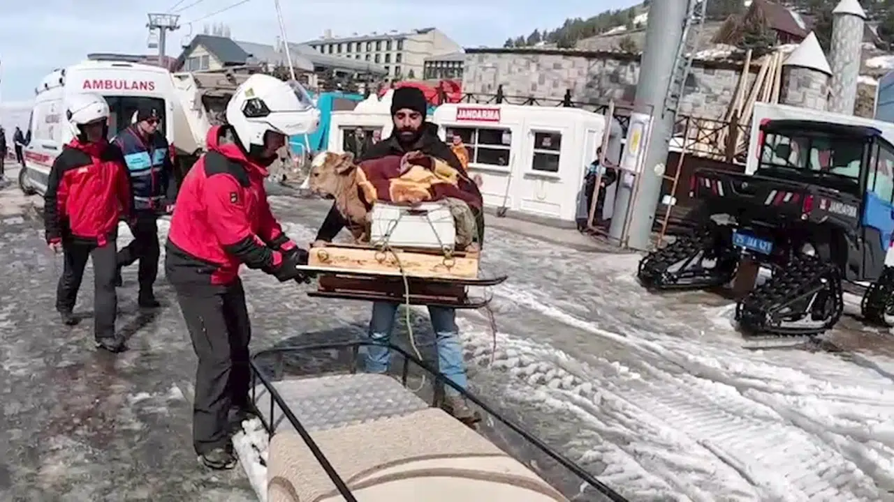 Palandöken Kayak Merkezi'ndeki Biryepiri komunda hayvancılıkla uğraşan kişi, hasta buzağıyı yolun kardan kapalı olması nedeniyle kızakla şehir merkezine getirip, veterinere götürdü. Tedavi ettirdiği buzağıyı otomobille Palandöken Kayak Merkezi'nin acemi pistine kadar getiren sahibi, buzağıyı koma götürmek için jandarmadan yardım istedi. Palandöken Kayak Merkezi'nde görevli Jandarma Arama Kurtarma timleri, (JAK) kar motosikletinin sedyesinde buzağı ile sahibini 2 kilometre uzaklıktaki koma götürdü. Buzağısını sağlıklı bir şekilde teslim alan çiftçi ekibe teşekkür etti. (DHA)