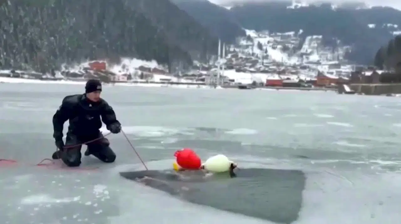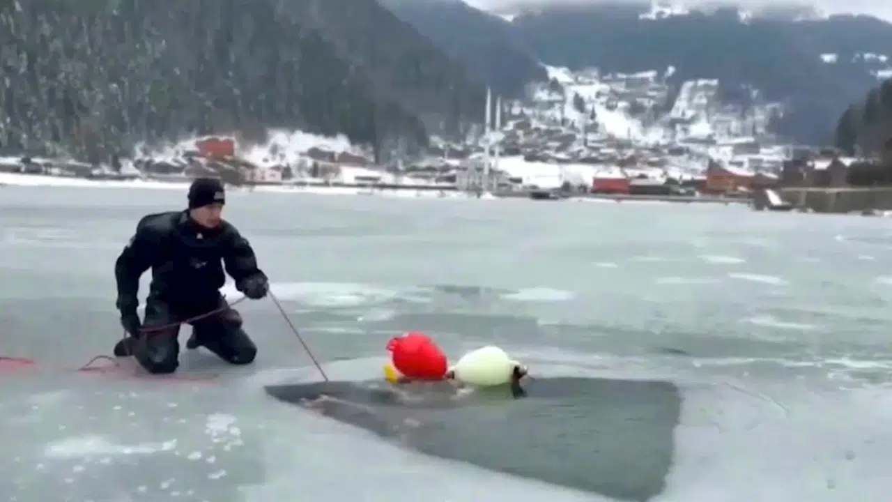 Jandarma SAK Timi’nden Uzungöl’de buz altı dalış tatbikatı