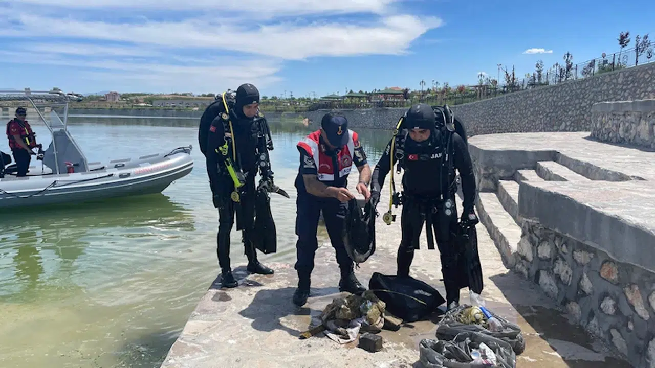 MALATYA,(DHA)-MALATYA İl Jandarma Komutanlığı'na bağlı Sualtı Arama Kurtarma (SAK) timleri, 'Dünya Çevre Günü' nedeniyle Karakaya Baraj Gölü'nde atık temizliği yaptı.
