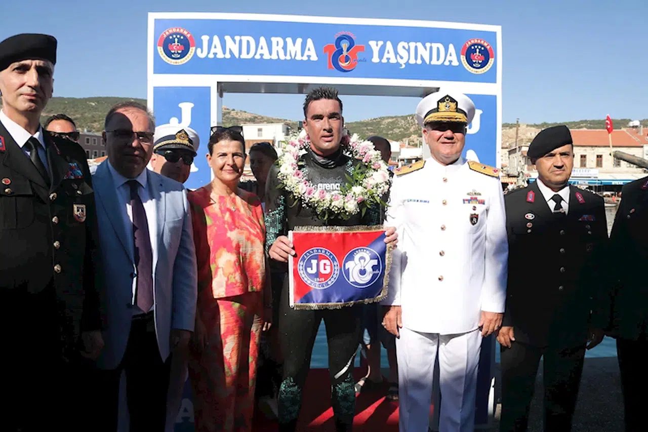 Jandarma Okul Komutanlığı Yüzme Takımı sporcusu olduğunu belirten Jandarma Üsteğmen Emre Öztürk; 1 Temmuz Denizcilik ve Kabotaj Bayramı'nı ve Jandarma Genel Komutanlığı'nın kuruluşunun 185'inci yıl dönümünü kutladığını söyledi. Emre Öztürk, "Komutanlığımızın kuruluşunun 185'inci yılı nedeniyle düzenlediğimiz bu etkinlikte Karaburun'dan Foça'ya 23 kilometre yüzdüm. Bitirdiğim için ve bu teşkilatta görev yatığım için onurlu ve gururluyum. Vatanın her yerinde milletimizin emrindeyiz. Jandarma 185 yaşında" dedi.