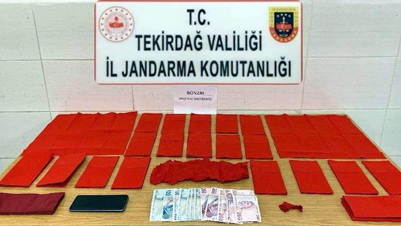 Kapaklı İlçe Jandarma Komutanlığı ekipleri E.Y.'nin üzerinde yaptığı aramada uyuşturucu madde ele geçirildi. E.Y.'nin uyuşturucuları B.Ç.'den aldığını söylemesi üzerine jandarma ekipleri B.Ç.'nin Çerkezköy ilçesindeki evinde arama yaptı. Aramada, toplam 10 bin 500 içimlik peçeteye emzirilmiş bonzai ile suçtan elde edildiği değerlendirilen 1720 lira ele geçirildi. Jandarmadaki işlemlerinin ardından adliyeye sevk edilen B.Ç., çıkarıldığı mahkemede tutuklandı. (DHA)