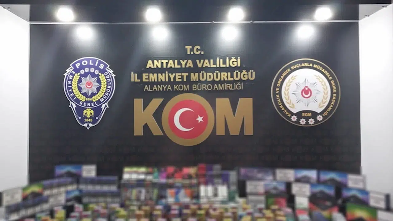Antalya Cumhuriyet Başsavcılığı koordinesinde, Kaçakçılık ve Organize Suçlarla Mücadele Şube Müdürlüğü görevlilerince Konyaaltı, Aksu, Alanya ve Manavgat ilçelerinde kaçakçılık operasyonları düzenlendi. '5607 Sayılı Kaçakçılık Kanununa Muhalefet Etmek' suçunun önlenmesine yönelik yapılan çalışmada; 53 bin 200 makaron, 15 akıllı cep telefonu, 75 bluetooth kulaklık, 1165 elektronik sigara, 596 paket gümrük kaçağı sigara, 125 puro, 4081 nargile ambalajı, 2 kg nargile tütünü, 470 paket pipo tütünü, nargile tütünü ambalaj makinası ve sigara sarma makinası ele geçirildi.