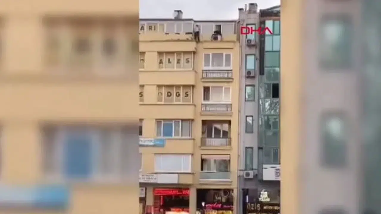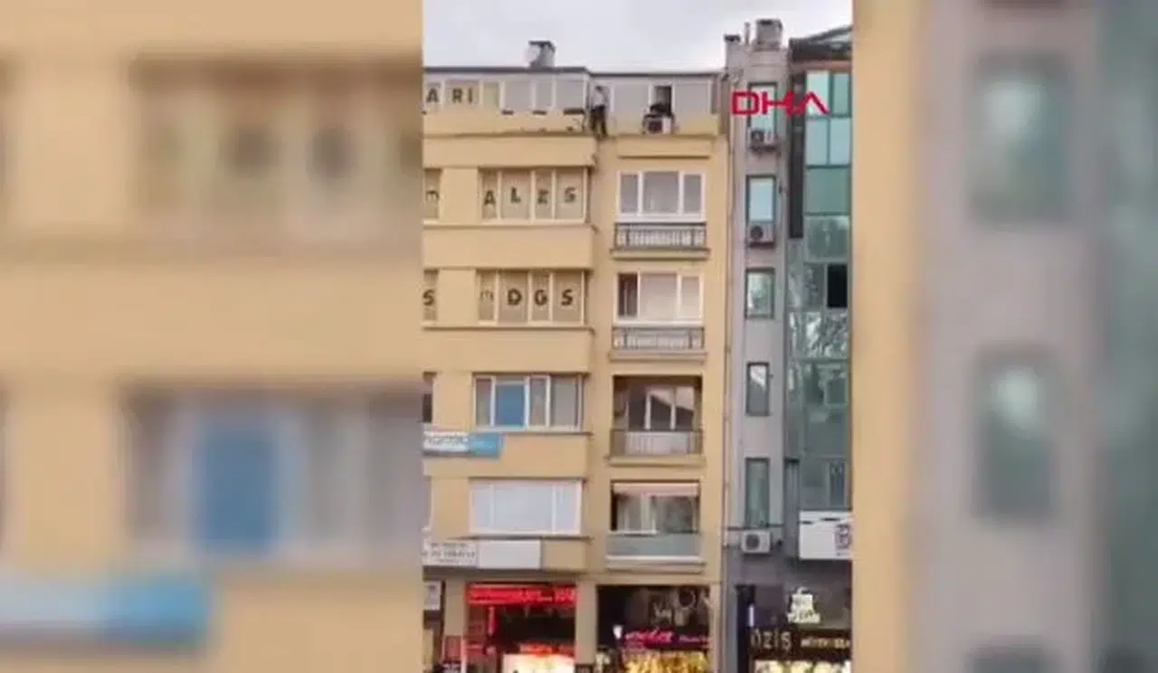 Olay Söğütlüçeşme Caddesi’ndeki 6 katlı bir binada yaşandı. Bir işçi binanın en üst katındaki dairenin dış cephesine hiçbir güvenlik önlemi almadan çıktı. Metrelerce yükseklikte tehlikeye aldırış etmeyen işçi klima tamiri yaptı. Dairenin içindeki arkadaşından zaman zaman malzeme alan işçinin tehlikeli anları cep telefonu kamerasıyla kaydedildi.