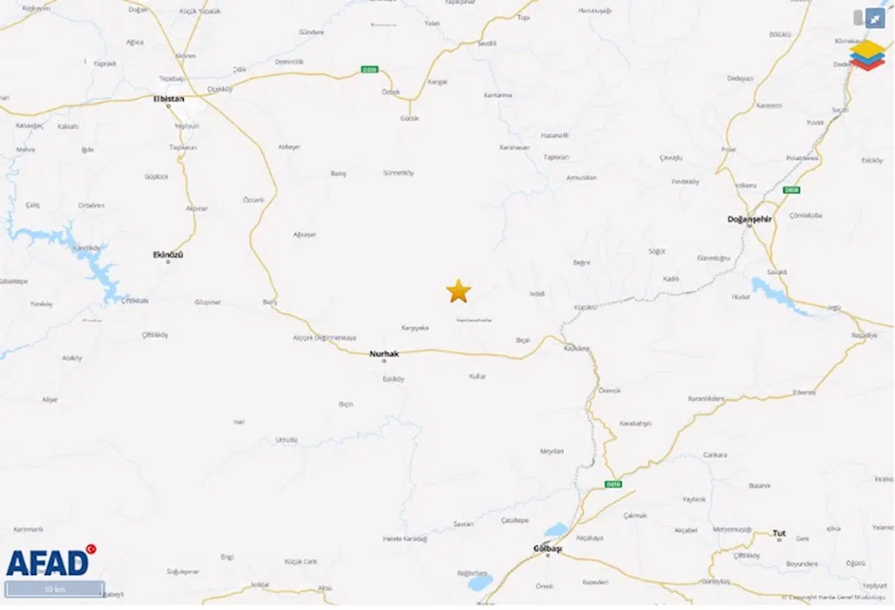 Afet ve Acil durum Yönetimi Başkanlığı Deprem Dairesi’nin (AFAD) verilerine göre, saat 05.04’de merkez üssü Kahramanmaraş'ın Nurhak ilçesi olan 4.1 büyüklüğünde deprem meydana geldi. Deprem yerin 6.98 kilometre derinliğinde kaydedilirken, ekiplerinin ilk incelemesinde herhangi bir olumsuzluk yaşanmadığı öğrenildi. (DHA)