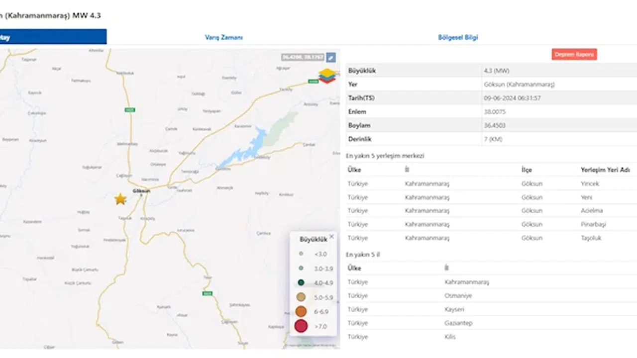 Kahramanmaraş’ta 4.3 büyüklüğünde deprem