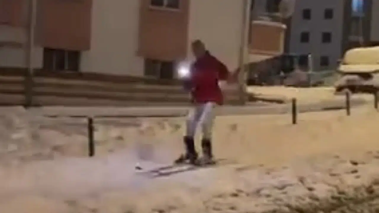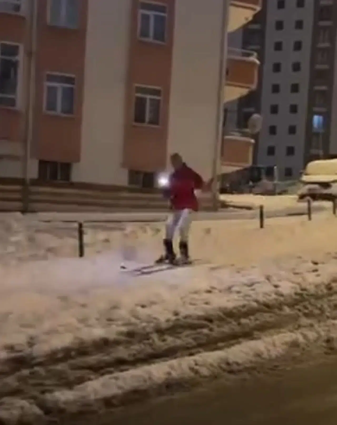 Kentte yoğun kar yağışının ardından bazı cadde, sokak ve kaldırımlar karla kaplandı. Talas ilçesinde yaşayan Ahmet Haşim Yılmaz, dün akşam saatlerinde kayak takımlarını alıp dışarı çıktı. Yılmaz, karla kaplanan kaldırımlarda kayak yapmanın keyfini çıkardı. O anlar Yılmaz'ın arkadaşı tarafından kaydedildi. DHA)