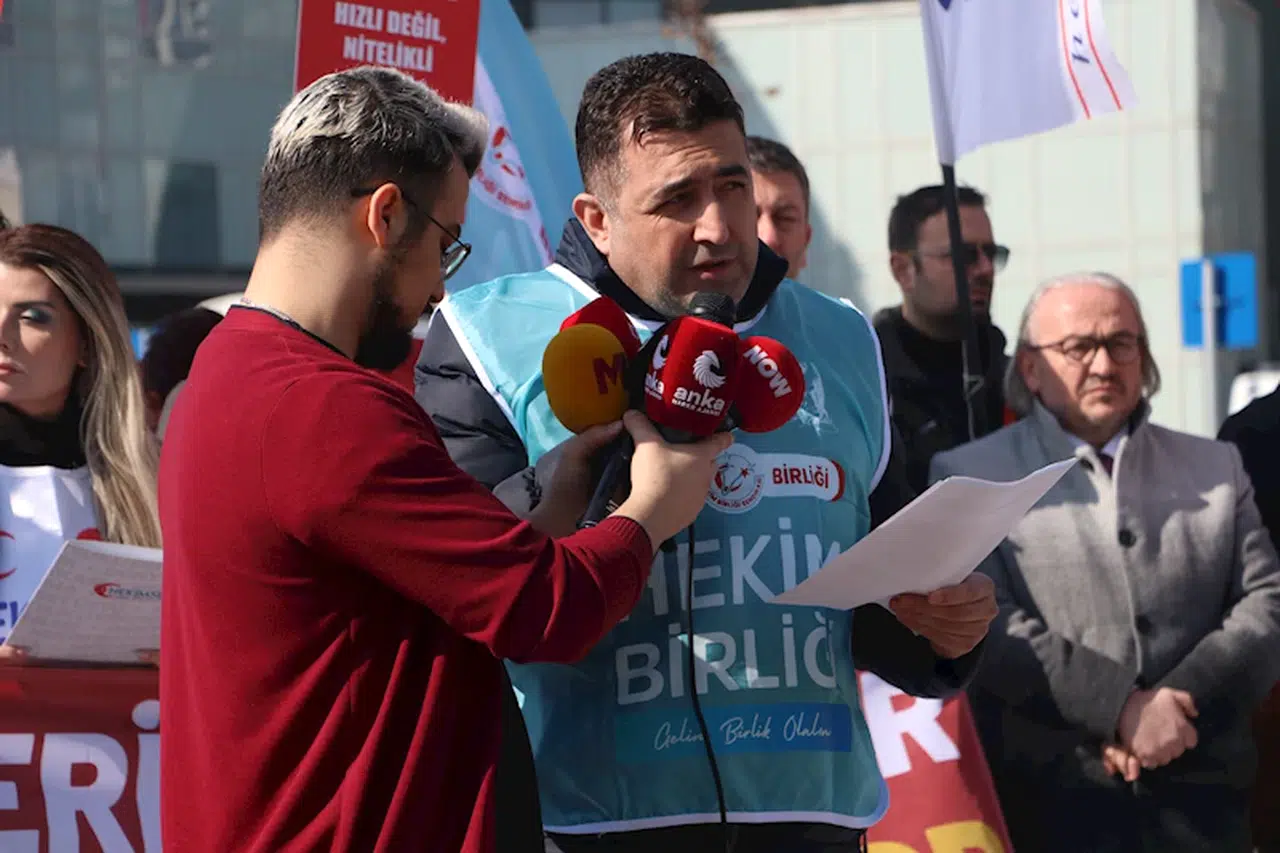 Ankara İl Sağlık Müdürlüğü önünde bir araya gelen STK’lar basın açıklaması yaptı.Hekim Birliği Sendikası Genel Başkan Yardımcısı diş hekimi Özgür Öz yaptığı açıklamada “Yıllardır görmezden gelinen sorunlarımız artık tahammül edilemez boyuta ulaştı. Biz diş hekimleri olarak emeğimizin karşılığını almak, insanca çalışmak ve hastalarımıza nitelikli sağlık hizmetini sunabilmek için iş bırakıyoruz. Diş hekimleri olarak halklarımızı istiyoruz. Bu ülkenin diş hekimleri olarak ilk kez bu kadar geniş katılımla, diğer meslek gruplarından ayrı olarak iş bırakma eylemi düzenliyoruz. Kamu diş hekimleri olarak işimizi aşkla yapmak için 14 Şubat'ta iş bıraktık. Çünkü her geçen gün artan sorunlarla baş etmeye çalışırken mesleğimizi sürdüremez hale geldik. Halkımıza nitelikli sağlık hizmeti sunmak için çabalıyoruz. Ancak mevcut çalışma koşulları bizi tükenme noktasına getirdi. Sorunlarımız ve taleplerimiz her geçen gün artıyor. MHRS sisteminde aşırı hasta yükü altında eziliyoruz, 10-15 dakikalık randevu süreleriyle dolgu kanal tedavisi işlemlerini hakkıyla yapmamız mümkün değil. MHRS sisteminin sürdürebilir hale getirilmesini istiyoruz. Hekim Birliği olarak önerimiz 12+4'tür. Haftanın bir günü kapalı cetvel uygulamasına geçilmesidir” ifadelerini kullandı.
