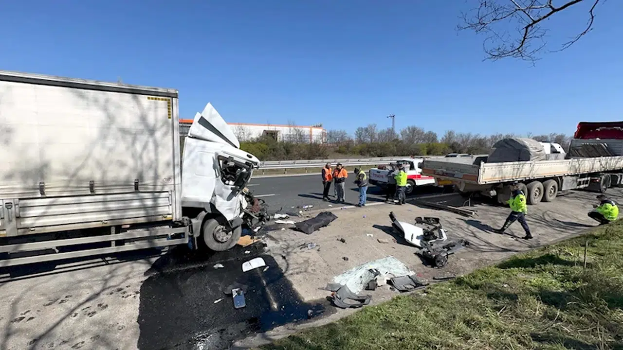 Mehmet YİRUN-Mehmetcan ARSLAN/TEKİRDAĞ, (DHA)- TEKİRDAĞ'da kamyon, yol kenarında park halindeki TIR’a arkadan çarptı. Bu sırada iki araç arasında sıkışan TIR şoförü Metin Maşalcı hayatını kaybetti, kamyon şoförü İdris Gökhan ise yaralandı.