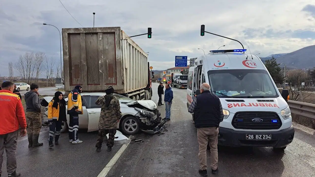 Kaza, İnönü ilçesi yakınlarında meydana geldi. Gökhan Y. kullandığı 34 FFA 369 plakalı otomobille, önünde giden Ertan İ. yönetimindeki 16 EL 136 plakalı kamyona çarptı. Kazada savrulan otomobil, kırmızı ışıkta bekleyen başka bir kamyona çarparak durabildi. İhbar üzerine gelen sağlık ekiplerinin ilk müdahalesinin ardından yaralı otomobil sürücüsü Gökhan Y. ambulansla Eskişehir Yunus Emre Devlet Hastanesi’ne kaldırılarak tedavi altına alındı. Yaralının durumunun iyi olduğu öğrenildi. Kazayla ilgili başlatılan soruşturma sürüyor. (DHA)