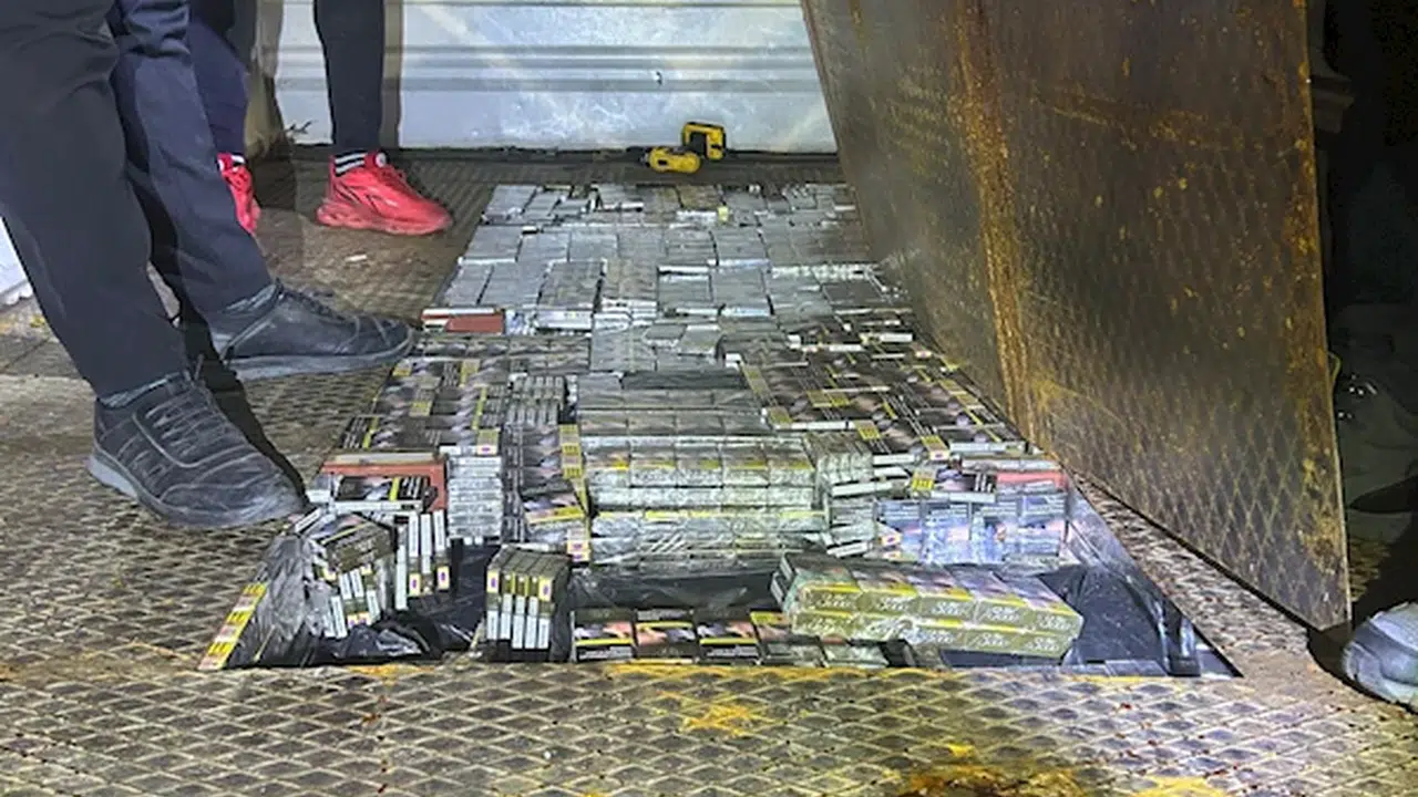 Kamyonetin kasasındaki gizli bölmede 9 bin 700 paket kaçak sigara ele geçirildi