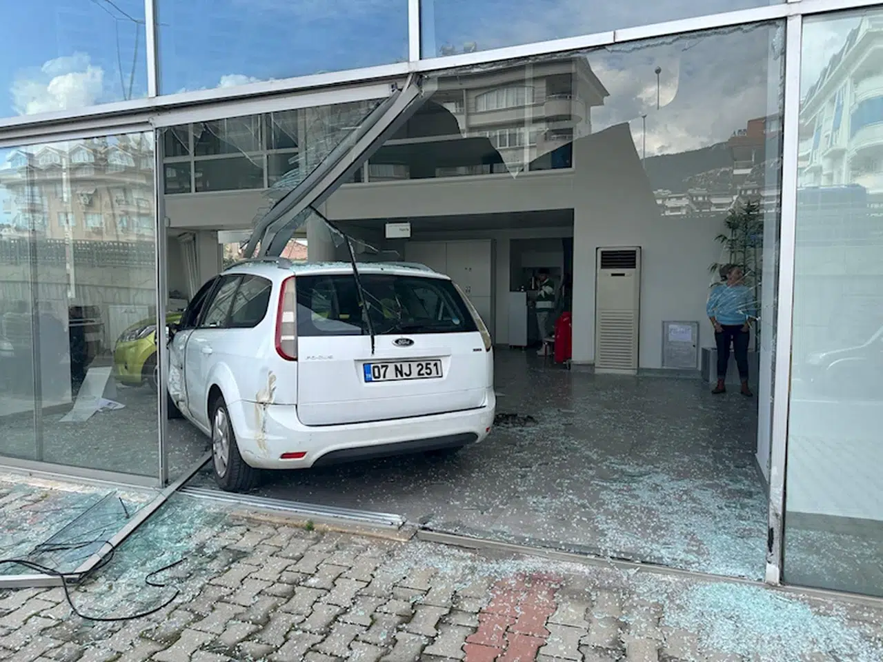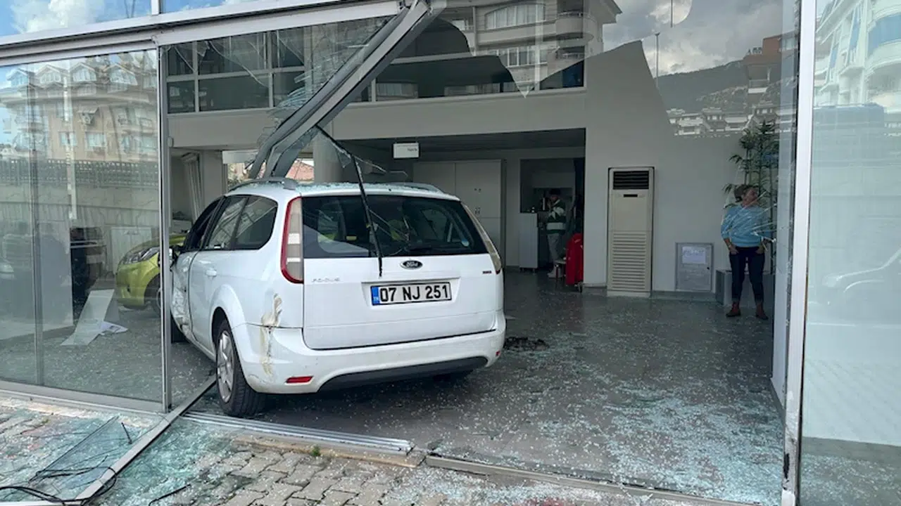 Kaza, saat 13.00 sıralarında Güller Pınarı Mahallesi Keykubat Bulvarı’ndaki Ticaret Lisesi karşısında meydana geldi. Kontrolsüz kavşaktan yola çıkan H.G. idaresindeki 07 NJ 251 plakalı otomobil, kamyonete yandan çarptı. Kontrolün kaybolduğu otomobil, kaldırıma çıkıp, sıfır araç satışı yapılan bayiye daldı. Bayinin vitrinini yıkıp, içeri giren otomobil, park halindeki sıfır araca çarptı. Otomobilde, sıfır araçta ve bayide hasar meydana geldi.